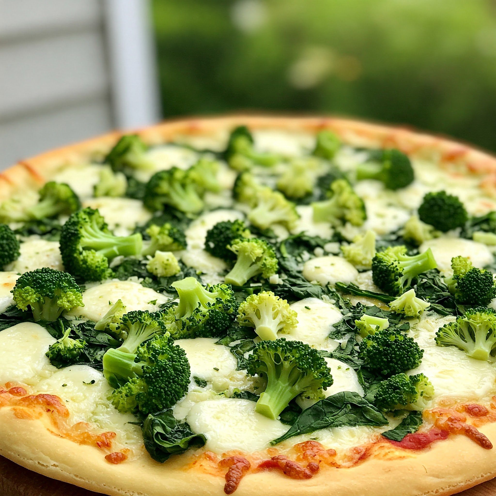 Broccoli, spinach, sausage, tomato sauce & cheese.